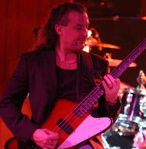 John plays a 1995 Gibson Thunderbird Bass with Dean Markley Blue Steel